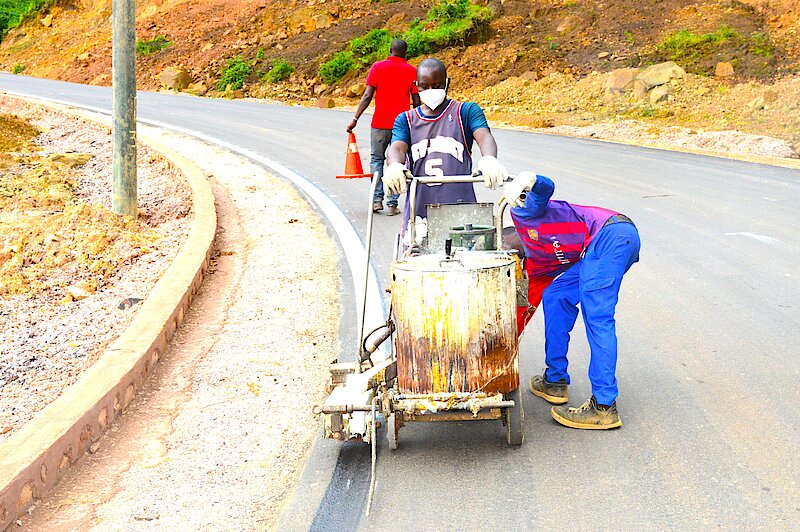 Workers during line-marking alongside Pindura-Bweyeye road/Photo by Jimmy N.The project has been mindful of its environmental impact, implementing measures to mitigate any adverse effects on the surrounding ecosystems. From minimizing disruption to wildlife habitats to incorporating eco-friendly construction practices, sustainability has been a guiding principle. Upon completion, the road will serve as a model for responsible infrastructure development.